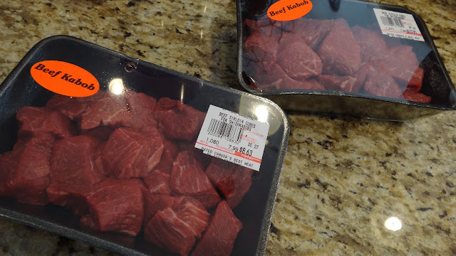Start with a good quality piece of Sirloin you can either buy it in cubes or in a large piece and you can cut your own. I went to a small butcher in my area that had some nice looking cubed.